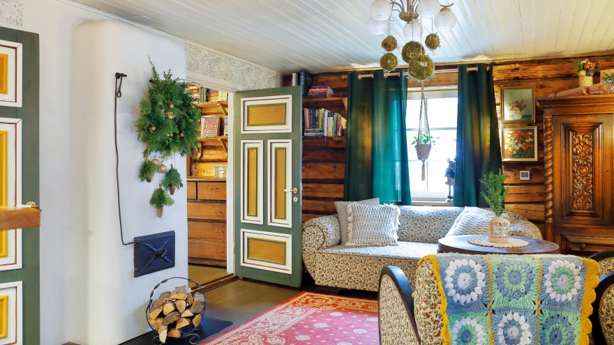 Elutuba: tigutugitoolid ja -diivan on eestiaegsed. See on Timo vanatädi mööbel. „Ema lasi uued katteriided ja vedrustuse panna. Tema armastas vanamööblit,” räägib peremees. | Juta Kübarsepp
